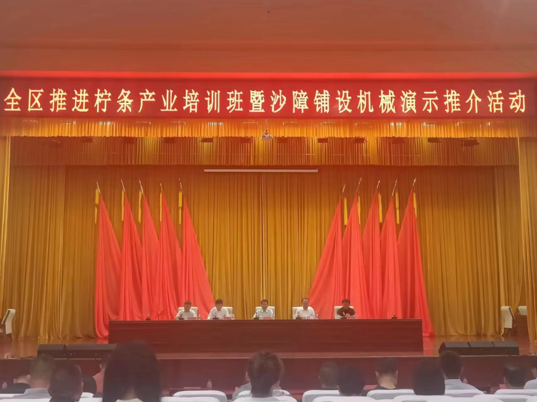 6月25日至26日,内蒙古自治区推进柠条产业培训班暨沙障铺设机械演示推介活动在内蒙古鄂尔多斯市达拉特旗召开,自治区农牧厅二级巡视员吴忠岩、自治区林业和草原局副局长陈永泉参加活动。