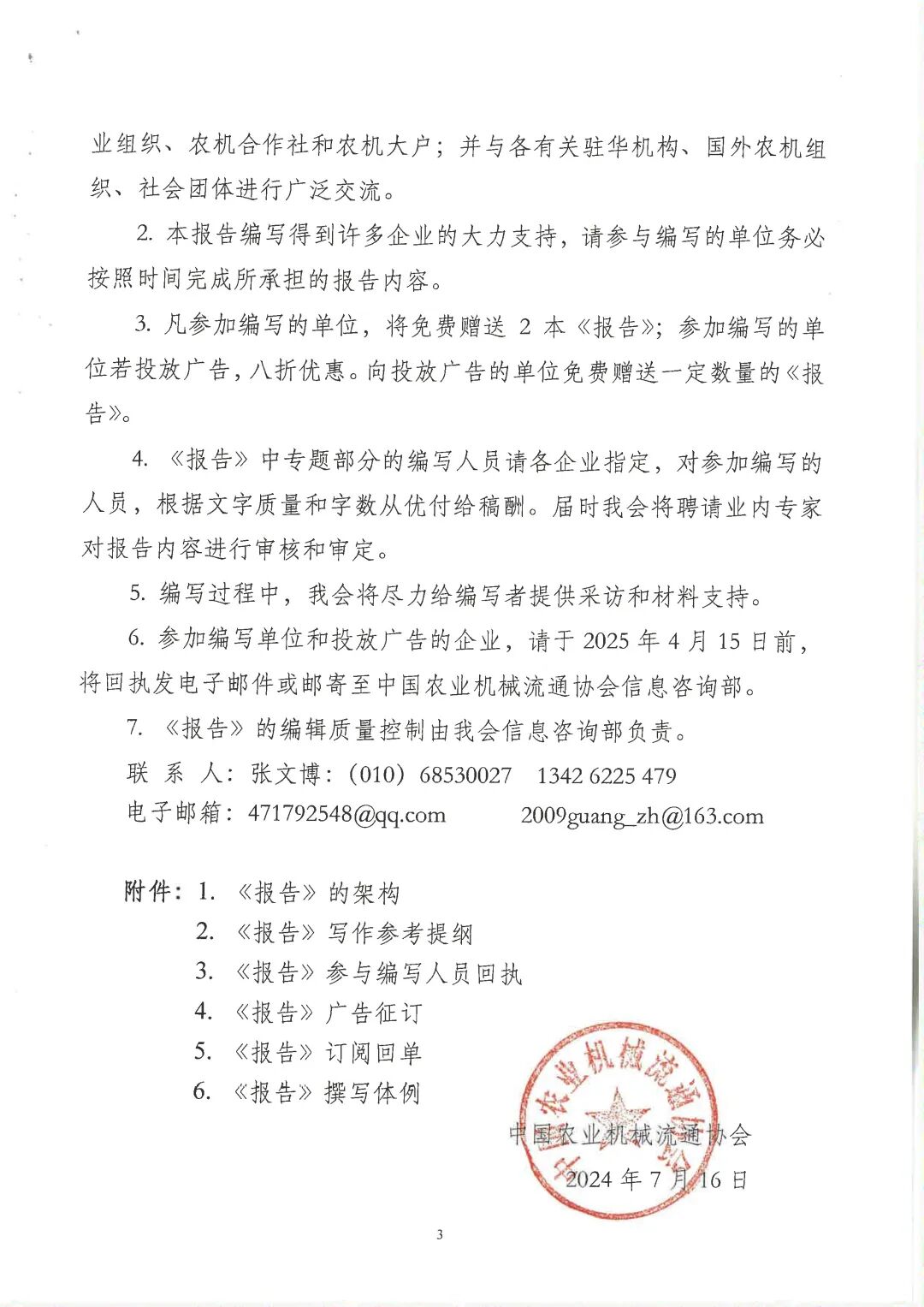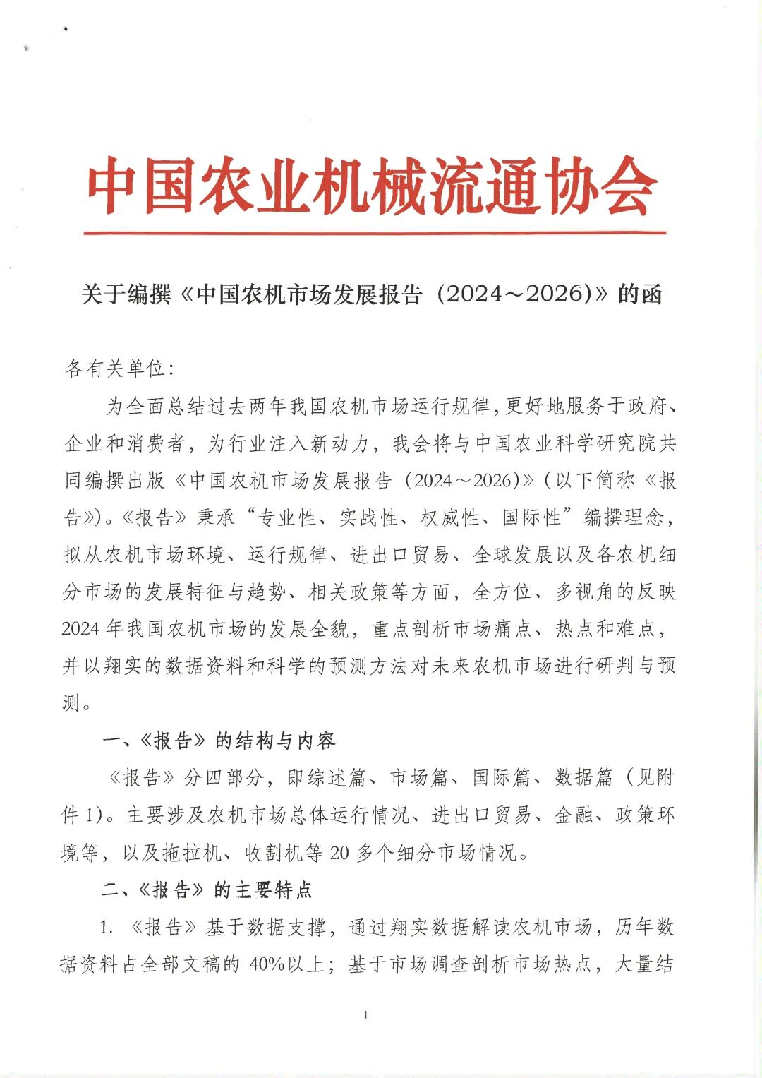 关于编撰《中国农机市场发展报告(2024~2026)》的函