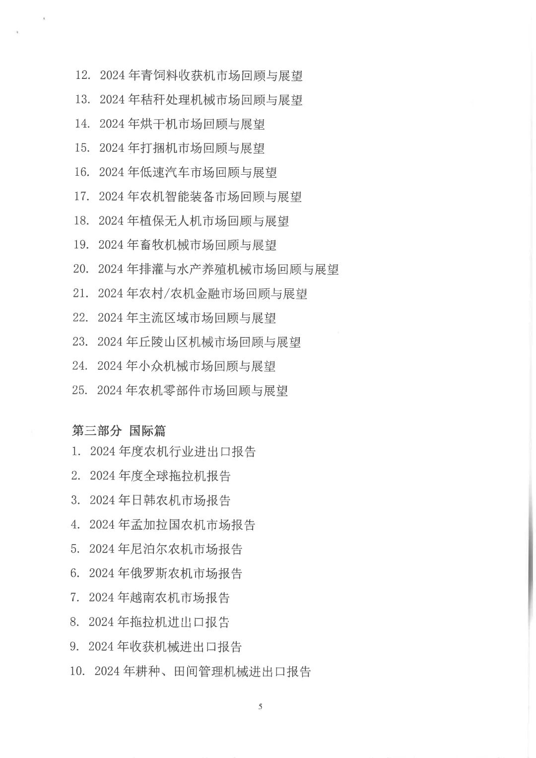为全面总结过去两年我国农机市场运行规律,更好地服务于政府、企业和消费者,为行业注入新动力,中国农业机械流通协会将与中国农业科学研究院共同编撰出版《中国农机市场发展报告(2024~2026)》。《报告》拟从农机市场环境、运行规律、进出口贸易、全球发展以及各农机细分市场的发展特征与趋势、相关政策等方面,全方位、多视角反映我国农机市场的发展全貌,重点剖析市场痛点、热点和难点,并以翔实的数据资料和科学的预测方法对未来农机市场进行研判与预测。图为《中国农机市场发展报告(2022~2024)》