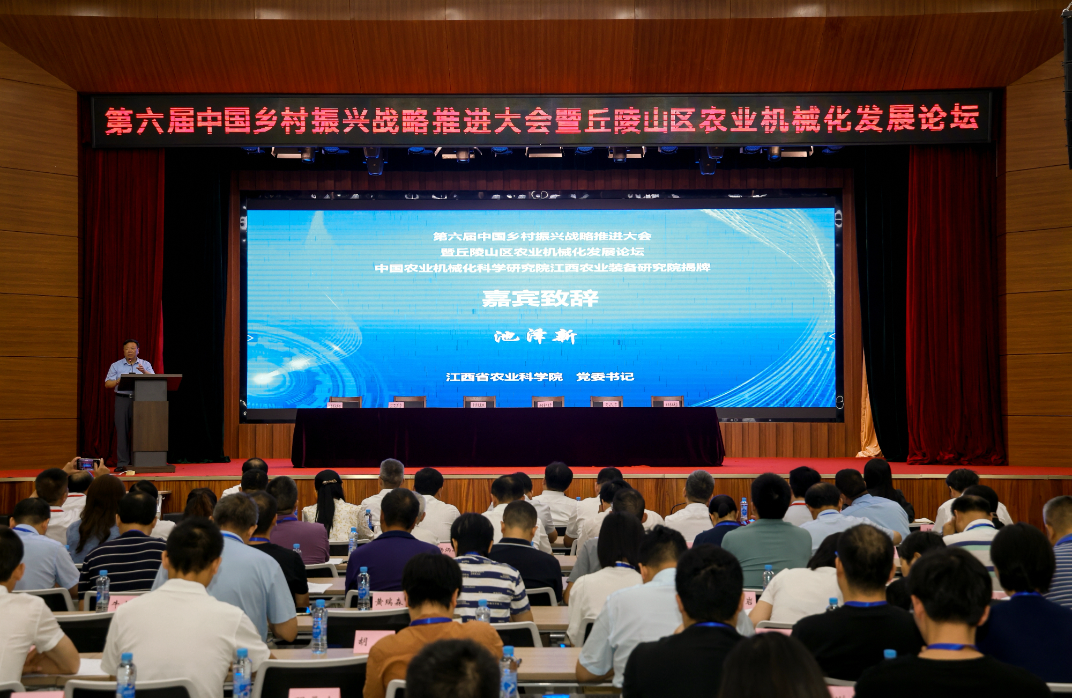 为有力有效推进全面乡村振兴,以加快农业农村现代化更好推进中国式现代化建设,8月9日至10日,以“新质生产力赋能全面乡村振兴”为主题的第六届中国乡村振兴战略推进大会暨丘陵山区农业机械化发展论坛在江西南昌举办。江西省科技厅党组书记、厅长宋德雄,党组成员、副厅长兼外国专家局局长陈炜蓉,科技合作处处长胡华林;江西省农业农村厅党组成员、省委农办专职副主任兰永清,农机化管理处处长贺中朝;中国农业机械化科学研究院集团有限公司(简称中国农机院)党委书记、董事长马敬春,总工程师方宪法;江西省农科院党委书记池泽新,副院长孙火喜;南昌市委常委、副市长赵捷,市科技局局长凌敏杰;南昌县委副书记、县长贾彧超;江西农业大学副校长刘木华;农业农村部农业机械化总站副站长徐振兴;中国农村技术开发中心处长胡小鹿;以及中国农业机械学会(简称学会)秘书长赵凤敏等领导和专家出席开幕式。学会各分支机构、各省(自治区、直辖市)农机学会秘书长和负责人、学会丘陵山区农林机械分会委员、学会会员,江西省科技厅、农业农村厅、南昌市、南昌县等相关部门负责人和江西企事业代表,以及来自全国高等院校、科研院所、企事业单位的领导和专家代表等近200人参加大会。开幕式由中国农机院党委委员、副总经理王振华主持。