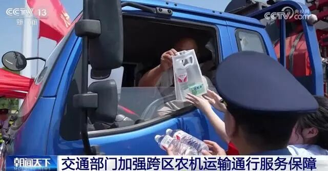 在湖北,交通部门对有组织的机收车队,联合政警开展交通疏导,开辟“绿色通道”,确保小麦跨区机收运输车辆顺畅通行。同时,组建“三夏”志愿服务队,免费提供矿泉水、便民医药箱、路线指引、政策咨询等服务。