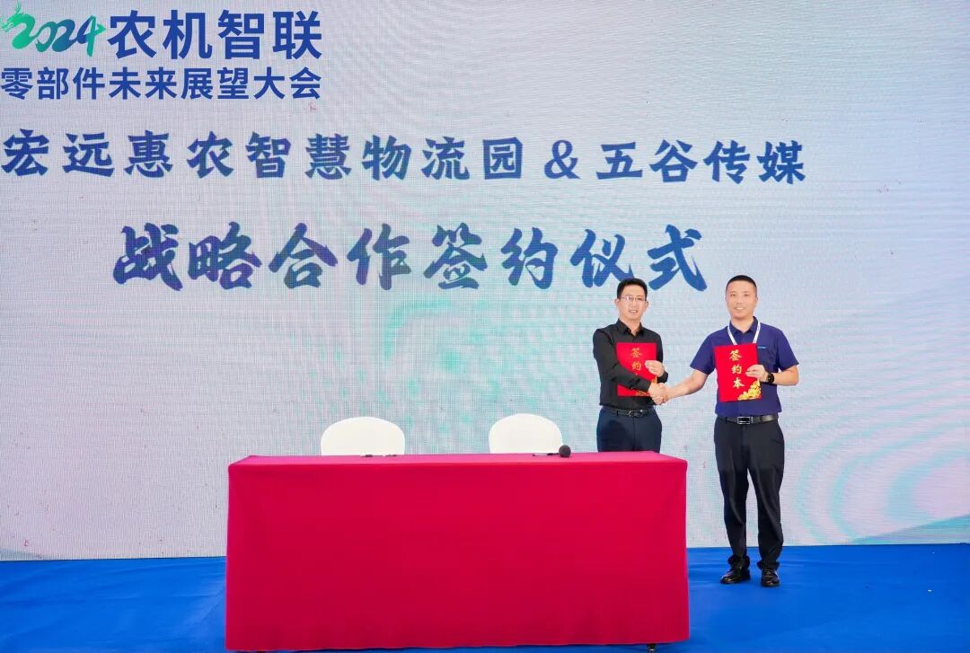 本次会议通过深入交流、共同探讨,为零部件行业的创新发展指明了方向。未来,中国农业机械流通协会将继续推动零部件与智能化、网联化的深度融合,帮助零部件企业提升智能化水平和远程服务能力,为农机提供更加精准、高效、可靠的支撑。大会现场还举行了宏远惠农智慧物流园与五谷传媒战略合作签约仪式。